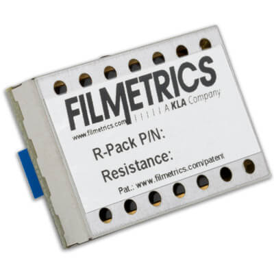 为了认证四探针测试系统的电学性能表现,Filmetrics为R50和R54方块电阻测试系统提供了校准用电阻套件。这些电阻由从毫欧级到兆欧级不等的11个标称电阻值中选取而得。可额外付费选择NIST可追溯的电阻套件。