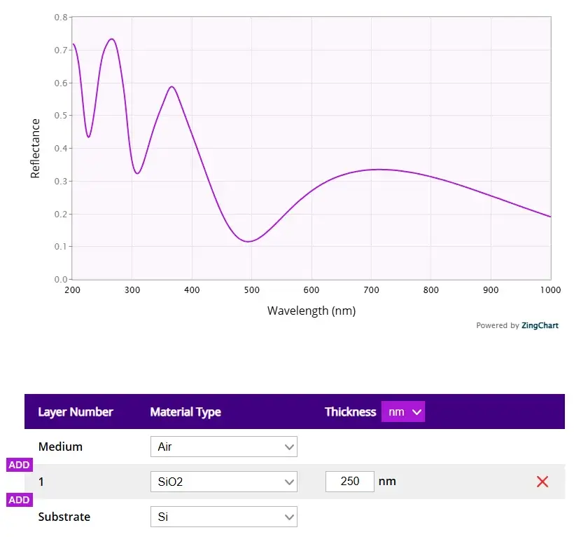 请在下方输入您的薄膜参数,以计算由于薄膜干涉造成的反射率。最多可输入 20 张薄膜的参数。